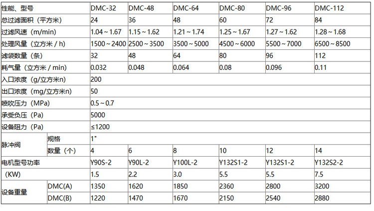 性能、型號 DMC-32 DMC-48 DMC-64 DMC-80 DMC-96 DMC-112